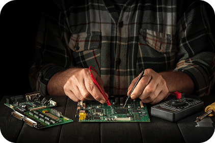 Ons team bestaat niet alleen uit medewerkers. Wij houden van techniek en gaan graag de meest complexe uitdagingen aan. Ieder van ons heeft diepgaande kennis in zijn vakgebied en staat klaar om deze kennis toe te passen bij het herstellen van uw apparaat. U kunt altijd met al uw vragen of problemen bij ons terecht, wij helpen u graag verder.
